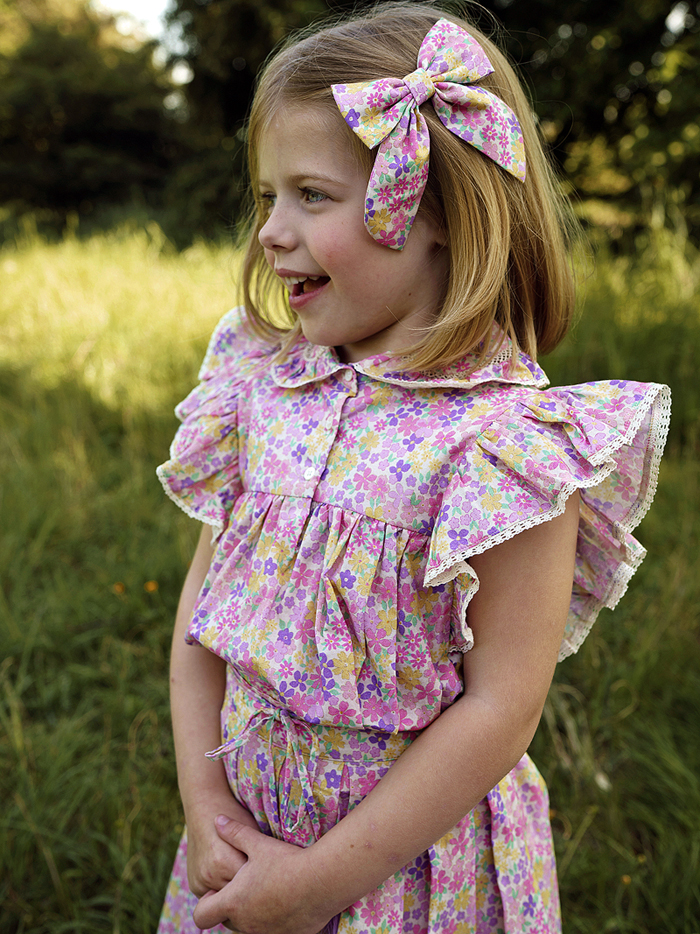 Early Sunday Kids piles on the romance, with generous ruffles, a sweet Peter Pan collar, and flowers that would make Monet jealous. Seen at Playtime New York’s Spring 2026 wholesale children’s fashion show. -Tina Barry