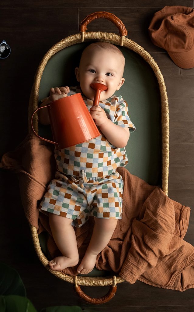 For the sophisticated baby: Antebies’ organic cotton top and shorts, checkered in muted shades of dusty green, tan and cocoa (0-18 months). Seen at Diane Kocevar’s Sweetpea Showroom at the Spring 2026 Playtime New York wholesale baby and children’s trade show. -Tina Barry