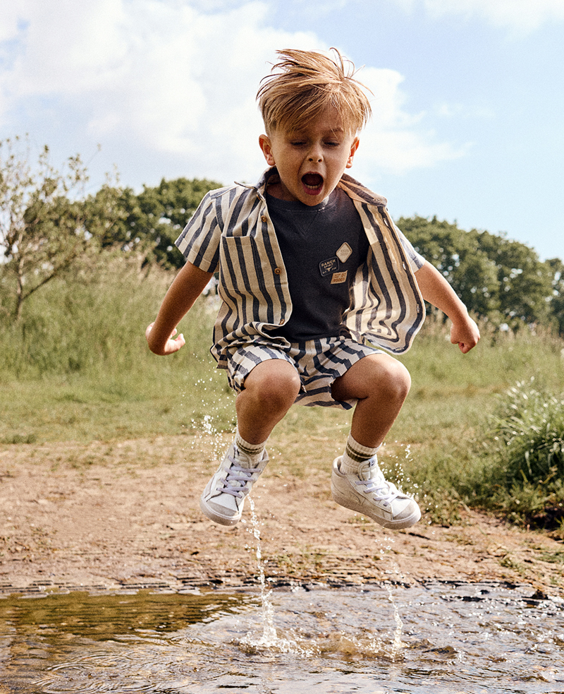 Daily7Kids offers three reasons to jump for joy for #springsummer26: the cotton jersey Basic Badge T-shirt, all-cotton Stripe Shirt and Shorts (1-10years). For wholesale at nyckidsmarket.com contact Sweetpea Showroom. -Tina Barry