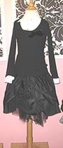 The narrow layered tops in stark black and white meet their match with the silky, tulle-lined, gathered skirt.
