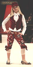 MONNALISA Homebase: Arezzo, Italy DESIGNER: The Monnalisa design team Sizes: 12 months-16 years; Wholesale prices: Contact manufacturer In their words: "Monnalisa's new fall collection recalls the elegance of the 1960's and the romanticism of the European countryside ." On the kittenwalk and in the company's booth, the garments looked ultra-feminine with a rich mix of textures, embroidery and delicate ornamentation. Narrow tops, above-the-knee skirts and leggings define the season's silhouette. Their group of charcoal, silver, black and white pieces may be the strongest showing of this look at the show.