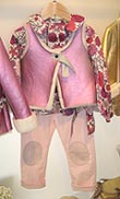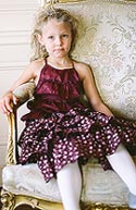 *PAPER WINGS Homebase: Mullumbimby, Australia DESIGNER: Jason Giabud Sizes: 2 to 8 years; Wholesale prices: Contact manufacturer In their words: "This season for girls, we have mixed Edwardian shapes with distressed denim, 50's style handprints with classic striped Jersey, lush 1920's shapes and textures matched with a Degas inspired print, and of course, our collection wouldn't be complete without a Victorian bustle or two!" For boys "18th Century pirate shapes mix with 1970's western shirts, merging two of the most popular boys' themes. Add to this, boldly striped tee's and graphic prints, and you get a refreshingly different choice in fashion for boys." Amen. Giabud has designed sets and costumes for Moulin Rouge, Star Wars and Peter Pan. With a background like that, he isn't going to approach the creation of a collection with a typical "what are the trends?" approach. Instead, Giabud pulls inspiration from "an eclectic range of historical shapes, details, textures and original prints. The prints are developed from old lithographs, vintage fabrics and old garments." The clothing looks as if it were borrowed from the racks of an eccentric theatre costume shop and assembled at a child's fancy. Like the work of a good costumer, the pieces display exquisite craftsmanship and a strong sense of history.