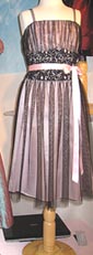 Outstanding pieces: Every detail of this lovely dress is meant to complement the wearer: The gathered bodice draws the eye up to a pretty face, the black center detail and silk sash shows off a slim waist, while the skirt falls in sheer, graceful folds. A girl couldn't help but feel attractive in this charming frock. Tel: 213-749-0733 E-mail: info@lenfantcollection.com