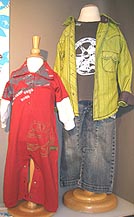 INFANTS AND UP LIL' SQUIRTZ Homebase: Vancouver, WA DESIGNERS: Shannon Stewart and Sharon Spencer Sizes: NB to 6 years; Wholesale prices: $6.50-$16 In their words: "Lil' Squirtz was inspired by a French appliqué technique called Broderie Perse (pronounced broh dur ee purse), meaning Persian embroidery. Broderie Perse is a highly regarded technique of cutting motifs or patches from printed fabric and stitching them onto a solid fabric. Traditionally, all the raw edges are turned under or covered with decorative stitching. Lil' Squirtz took this technique, which dates back to the early 1700s, and gave it a modern twist to make their own line of clothing, all of which has a frayed, edgy, funky patch." Stewart and Spencer's pre-washed cotton items come in several dusty, saturated tones that pair beautifully with the vintage inspired "Broderie Perse." Kids will love the imagery; parents will think the frayed edges around the appliqués are "cool."