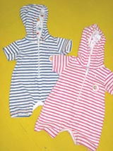 Favorites: This terrycloth one-piece is adorable as is or worn over a bathing suit. The material is soft to the touch and the cozy hood, lined in a whimsical fish print, makes it the "go-to" item for a day at the beach. Tel: 732-345-5073 E-mail: custservices@kissykissyonline.com