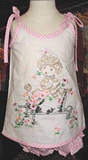 MY VINTAGE BABY Homebase: McKinney, Texas DESIGNER: Jessica Wiswall Sizes: NB to 14; Wholesale prices: $23-$70 Theme: Vintage chic Jessica celebrates the lovely embroidered handwork of the Forties and Fifties, as well as the vivid tablecloth prints of that era in her patchworked creations.