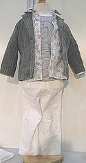 Boys are as fashion forward as their sisters in this mix of black and white prints, a cool washed denim jacket and sleek white trousers. Jamari International Tel: 212-695-1733 E-mail: Jlevine@jamariltd.com