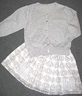 Favorites: Using a glittery knit for a classic cardigan shakes up the staid piece. Teaming the sweater with a jaunty A-line in a casual geometric print just adds to the fun.