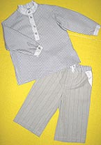 For an elegant brother/sister look, dress the boy in a sleek, menswear stripe tunic and coordinating flares. Tel: 33 14 28 21 250 E-mail: judithlacroix@aol.com
