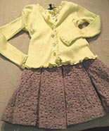 Favorites: The narrow lines and feminine flourishes of the dusty lime colored sweater set, complements the fullness of the simple cocoa pleated skirt. It's one of those outfits that took years of design experience to appear so effortlessly pulled together. tel: 011 33 476 634 975 email: ohlala@ohlala.fr