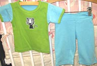 PIXEL MODERN PIECES Homebase: Los Angeles, CA DESIGNER: Shannon Svensrud Sizes: NB to 18 months; Wholesale prices: $5.50-$27 Theme: Good for babies, good for the earth This company is truly committed to Fair Trade, earth friendly products. To their collection of modern bedding, they've added organic T-shirt and pants sets with their own brand of fresh color and simple graphics.