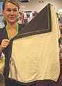 WOOBEE Homebase: Seattle, WA DESIGNER: Heather Correa Single stroller size $35, double stroller: $55 Theme: "Welcome to the world's most versatile luxury blanket." This is the blanket for a customer who wants practicality without the glitz. The Woobee, available in single and double stroller sizes, flips from plush material to a wind and water resistant backing. The blanket comes with loops and attractive grosgrain ties so it can be secured to any stroller. Correa had a sample of a blanket she'd washed 20 times, and not only was the color unchanged after laundering, but both sides became softer. The water repellant siding makes this item great for a picnic or afternoon at the beach.