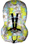 CAR SEAT COVERS BABBLE CHIC Homebase: Ventura, CA DESIGNER: Megan Paulson Size: Infant and toddler; Wholesale prices: $69 & $72 This newcomer's car seat covers have plenty going for them: They're available in six cute cotton prints embellished with an embroidered logo. For comfort, Paulson has added a quilted underside that provides a cushioning layer for the baby. Because she's a mother, Paulson understands the hassle of strapping a car seat into the back of a car. With that in mind, she designed the item to open and close with Velcro so it's easy on, easy off - and that car seat can stay just where it is until Junior outgrows it. One more thing, each cover comes in a matching cloth bag so it's great for gift giving.