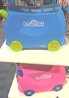 TOYS TRUNKI U.S. Importer: TrendyKid Suitable for kids ages three to six; Wholesale prices: $20 Theme: "Ride on kids. The Suitcase for globetrotting tots. The Trunki is the first ride-on suitcase for kids. The soft plastic case opens so children can stow all their must-haves like Barbie and her entire wardrobe, then they can either carry or pull the case (it comes with a heavy duty strap) or you can pull them while they ride. (Available in "Trixie" hot pink and "Terrance" electric blue.)