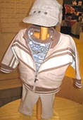Favorites: There are several admirable features to this boy's set: The taupe, cocoa and light blue combination is soft yet striking; the jacket's stripes are carefully engineered; and the tee's print is arresting. Tel: 510-222-5843 E-mail: rabbitmoon@rabbitmoon-usa.com