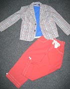 Favorites: Two ideal outfits for the odd couple: The hip brother on the left favors beautifully colored shirts and cargo pants. The conservative dude on the right never leaves the house unless his vest and pants match. Tel: 877-426-7240 E-mail: coraimports@qc.aibn.com