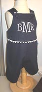 Favorites: This little navy romper makes an ideal canvas for boys' or girls' initials. It's a great gift item. Tel: 866 423-0574 E-mail: email@princesslinens.com