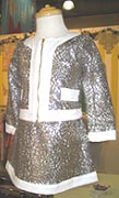 Favorites: This cool, 60's inspired suit appears to sparkle with thousands of sequins. It's dazzling all right, but what glimmers is a metallic burnout print. The novelty fabrication is a great choice for this Barbara Feldon-esque ensemble. (For post-60's folk, Feldon played the smartly dressed Agent 99 in the "Get Smart" TV series). Tel: 323-234-9086 E-mail: Info@littlemass.com