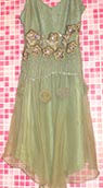 Favorites: This lilac silk chiffon mixes disco diva details with a Gatsby-era shape. The flattering hue is complemented by the jewel-sprinkled sheer shrug. Stunning!