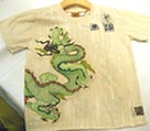 Favorites: Lee uses a textured screen that mimics aged paper for the background of the tee, then appliqués a wonderful dragon on the front. See those Chinese characters on the shirt's back? They're printed on the wrong side of the cloth so they appear to fade away. This is a boutique collection that doesn't take itself too seriously. Well done, Lee! Tel: 213-489-3050 E-mail: Albert@monsterrepublic.biz