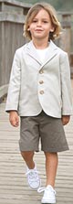 Favorites: Catrina fashions the boys' line in a palette of beige, ivory, charcoal, light blue and white. Like the jacket and shorts, the pieces look crisp and elegant and are easy to move in. Tel: 714-558-7751 E-mail: sales@neigeclothing.com