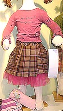 Outstanding pieces: Two fresh takes on plaid: As a kilt in a rosy cocoa and pink plaid worn over a tulle petticoat, or as an argyle knit to be mixed with plaid and khakis. Tel: 212-737-4431 E-mail: lberke@petitpetapon.com