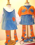 Love is in the air with these heart embellished sky blue velour jumpers and bright orange tights. (The hose are sold with the apparel for effortless dressing.) Tel: 514.381.9039 E-mail: coraimports@qc.aibn.com