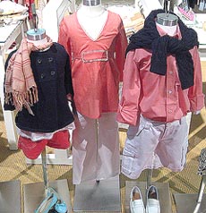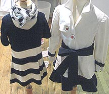 Outstanding offering: The designer employed the season's newest color trio: navy, peach, and white, to freshen classic girls' and boys' pieces. The look is traditional with a twist, the trademark style of this company. Tel: 212-274-1100 E-mail: Alexandria@mariechantal.com