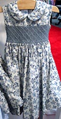 Outstanding offering: Here's a dress that captures the freshness of the season with the fashion forward, all important blue and white combination and blends it with traditional details such as the Peter Pan collar, heavily smocked bodice and full skirt. Tel: 203-461-8260 E-mail: Guida@oldworldchildren.com