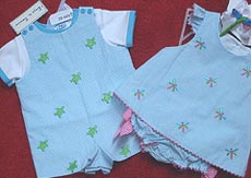 Traditional Spring 2009 Collections at the ENK Children's Club and Bubble Exhibitions A woman's basic wardrobe contains a few classics: a trench coat, a simple black dress (this season especially), a crisp white blouse, and a well fitting pair of jeans. Men can omit the dress and add a beautifully made suit or two and feel confident that they look stylish. Like their parents, children's wardrobes demand a backbone of dependable pieces - a special dress, maybe with smocking, in a pretty fabric; something seersucker for a party; a simple sweater in a go-with-everything color; a classic coat - to build on. The collections below, from Bubble - The Kids Trade Show and Children's Club (August 3-5, 2008), offer children traditional garments that reflect a timeless, always correct style.