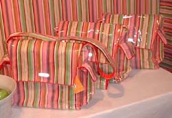 Kaufman stripe in tones of chartreuse, pink and orange.