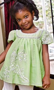 Specifics: Sizes: 2-10 years; Wholesale prices: $37-$60 Everything about this sweet top works as a cohesive whole: The delicate shape serves as a feminine canvas for the fresh mint green color and the lush cream embroidery. This is one piece that a mother will never give away.