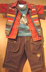 If the designers weren't as skilled at color combining the stripes over plaid over graphic tee might be hard to take. Here, the layering of pattern and tones seems natural. Tel: 514-383-3408 / 866-557-2222 E-mail: deuxpardeux@deuxpardeux.com