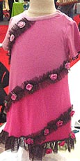 Outstanding piece: The pink A-line goes girly with black tulle detail and Uzbay's trademark crocheted posies. Tel: 516-921-7778 E-mail: Lokum2@aol.com