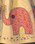 Outstanding piece: You can't get more 70's than this A-line, gingham jumper with woodcut-like appliqués. The detail comes from another jumper with the same shape. I included it because it's wonderful. Tel: 626-375-5634 E-mail: Info@mishalulu.com