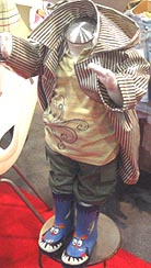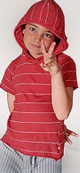 Outstanding piece: The gorgeous boy flashes the peace sign in two great striped pieces that don't match but pair beautifully. Tel: 213-488-1986 E-mail: Lauren@okkies.net
