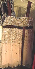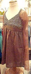 Outstanding piece: A little sparkle goes a long way on this rich beige silk dress with its glimmering bodice. The shrug's scattering of rhinestones catch the light like tiny stars. Tel: 917-797-0490 E-mail: Info@surrinyc.com