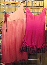 Outstanding pieces: The dress on the left, in the delicate ombred rose tones, reveals just enough with its one-shoulder design. The wild sister on the right, alive with a fuchsia into plum ombre, draws the eye to a gorgeous pair of legs. Tel: 212-967-2279 E-mail: sales@zoeltd.com