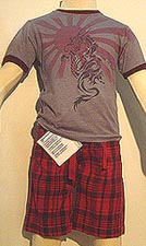 LITTLE TRAVELER Homebase: Watertown, MA DESIGNER: Shaun Budka Sizes: 12 months to 12 years; Wholesale prices: $12-$21 No need to travel further than this collection for tees and fun plaid board shorts yarn dyed in rich vegetable tones. Boys will say, "awesome" when they see the T-Rex, race cars, and animal graphics.