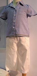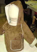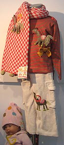 Outstanding piece: Decelles exhibited small fall and spring 2009 lines. This reversible smock is from her fall group. The neckline has a button detail that, when opened, expands to accommodate a child's widening shoulders. The piece is cut loose too, so it can start as a little dress and segue way into a tunic. Clever. Tel: 917-312-3465 E-mail: Info@dandangoods.com