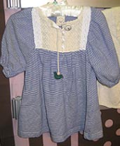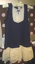 Vintage appeal is present in the dress's tucked bib front and the ecru colored, double-tiered eyelet ruffle. It's a charmer. Tel: 323-588-8857 E-mail: Robert.c@hazelclothes.com
