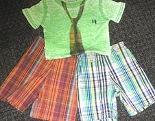 Chiu gives a wink at formality with the tie-printed tee and funky woven shorts. Tel: 949-233-0352 E-mail: Annac@kidsink.com