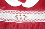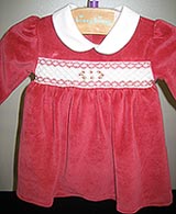 Outstanding piece: This little dress, in lush velour is rich in smocked detail. The dusty coral-red is fresher than the traditional ruby we associate with the winter holidays. Tel: 732-345-5073 E-mail: Customerservice@kissykissyonline.com
