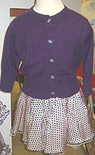 A classic cardigan gets a fresh new look when it's knit in vivid purple cashmere. The silk skirt lined in tulle for buoyancy adds charm. Tel: 212-580-5190 E-mail: Cz@babycz.com