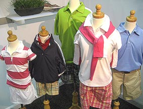 Outstanding pieces: The Garb look: elegant classics just right for the golf course and tennis court. The items are manufactured with all cotton or high-performance materials and can be personalized with sports motifs. The collection is stocked year round for no-wait ordering. Tel: 303-674-3139 E-mail: Info@garbinc.com