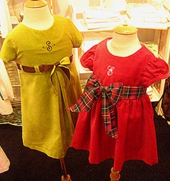 Outstanding piece: Vargish's velvet dresses are fresh and crisp in unusual colors like this olive green tied with the brown and cream grosgrain bow. The narrow skirt and simple cap sleeves make it modern. Tel: 203-226-8600 E-mail: info@asiasoftidea.com