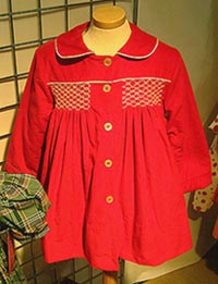 Outstanding pieces: This red corduroy piece with smocking front and back and soft fleece lining is right out of "Dick, Jane and Sally."