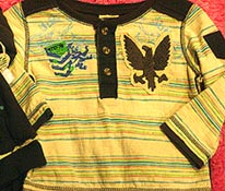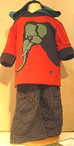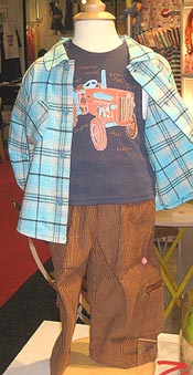 Outstanding pieces: Green clothing took a novel direction for fall with work-the-land themed graphics and shapes made for the country farmer. The look gets a bump upscale with the mix of carefully orchestrated patterns and comfortable, not sloppy shapes. Tel: 800-287-5139 E-mail: Zutano@zutano.com