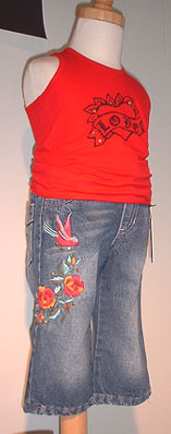 Spring 2006 Trends: Retro Is Modern If anyone doubted that popular styles in women's and men's market trickled down to kids' wear, then one glance at the children's collections at the ENK Children's Club Show would have changed their minds. Take the babydoll dress, an up-market trend last spring in women's wear. Guess what? Empire-waisted sundresses with shoulder ties were seen all over the kids' show. Shrugs that looked like starlets' bed jackets, tiered skirts, sequins and tunics that were hot last spring and summer in women's boutiques, are just as important in the kids' market for 2006. Boys will look especially natty when the weather warms up in an off-the-rack version of dad's "bespoke" styled suit. They'll wear the sets in crisp ticking stripes and plaid seersuckers - if their moms can persuade them to take off their T-shirts. Speaking of Tees, they're even hotter this season than they were last spring.