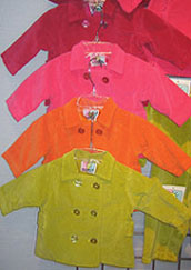 Outstanding Pieces: The soft, velveteen separates in luscious tones of kiwi, apricot, watermelon and raspberry. Scoop 'em up! Tel: 510-239-8389 E-mail: erin@momdesigns.com